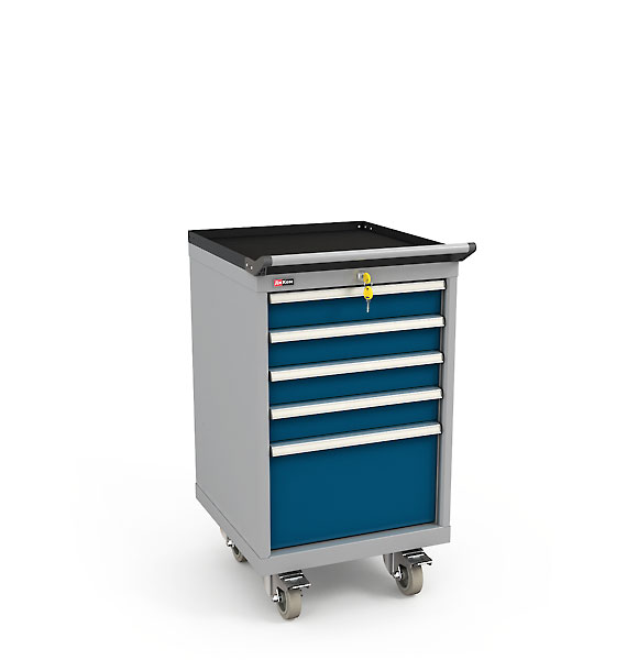 Пять выдвижных ящика тумбы высотой 100 мм и 300 мм. оснащены центральным общим замком EURO-LOCKS (Германия, 2000 комбинаций). Внутренняя высота ящика меньше на 20 мм.